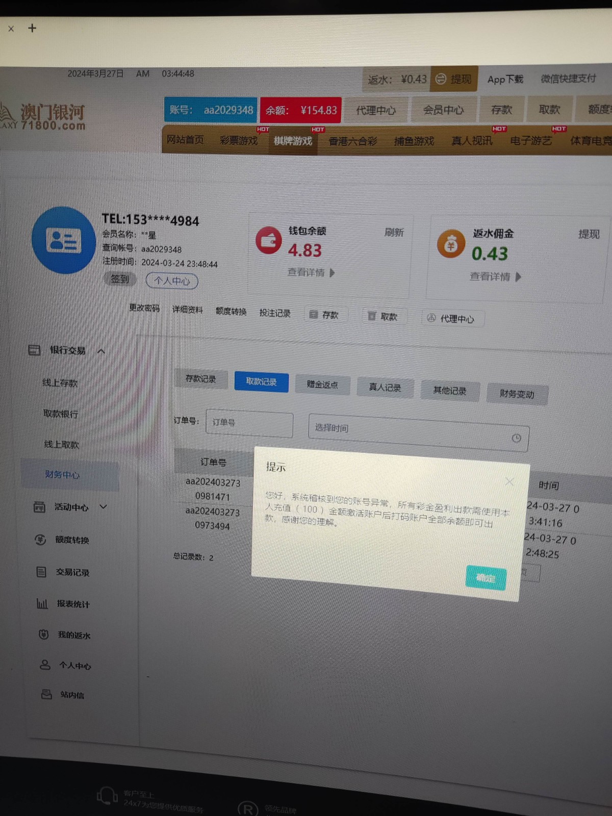 充值300打上去都黑,真的没格局