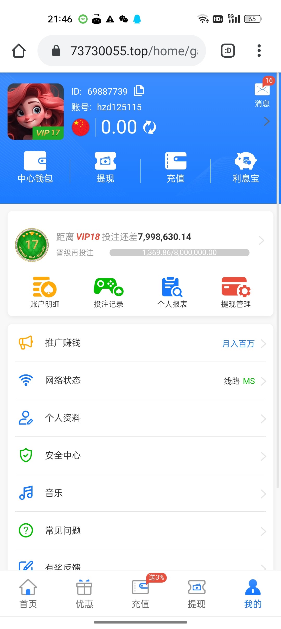 领了8块彩金打到110充值同等金额出款,这个台能冲吗老哥们