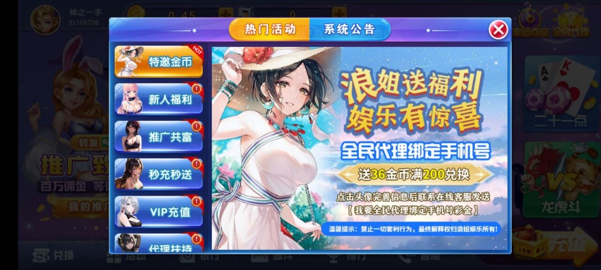 浪姐棋牌送36