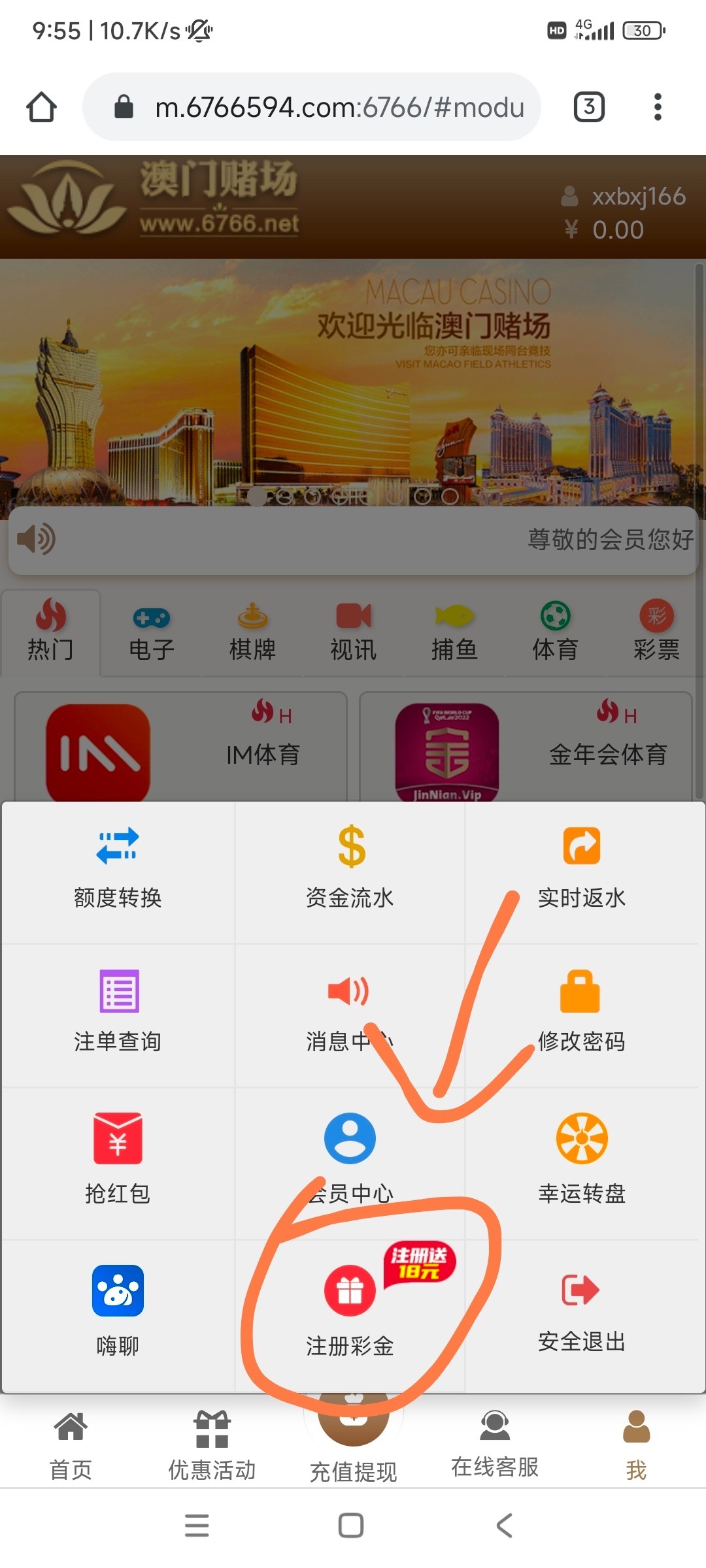 新用户注册完善资料点击【我——注册彩金】发短信秒领18,最低180提,以前玩过重新注册个号继续撸,手机号多的可以无限撸。记得换IP。还有一个叫"金年会"跟这个台子是同公司的也送18。自己在本站右上角搜索懒得顶帖了。