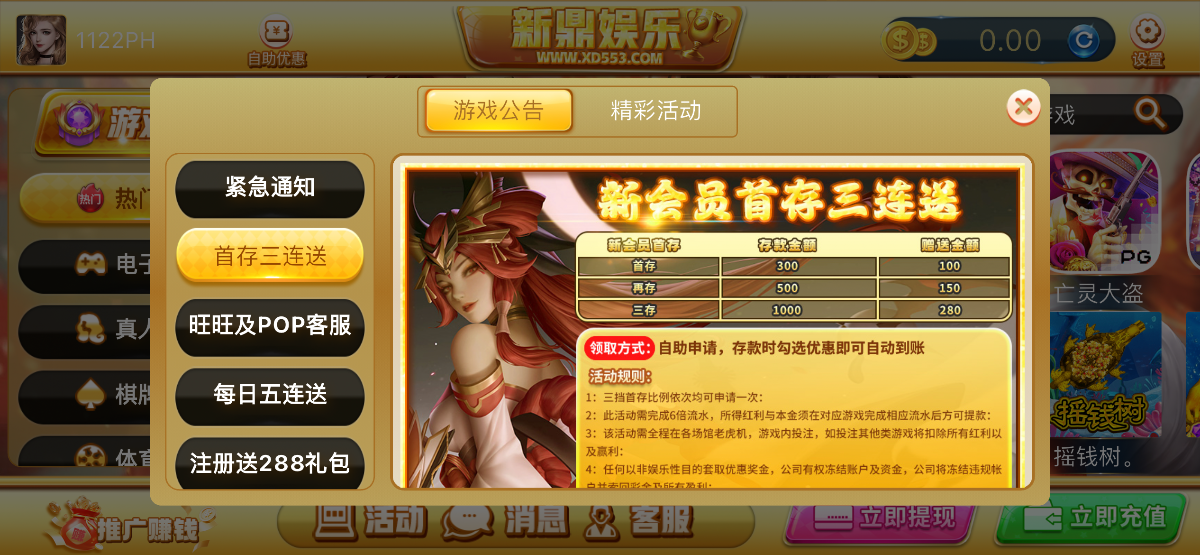 哥们早就玩过了,刚刚都是吃肉活动,还算可以充100充100注册送30