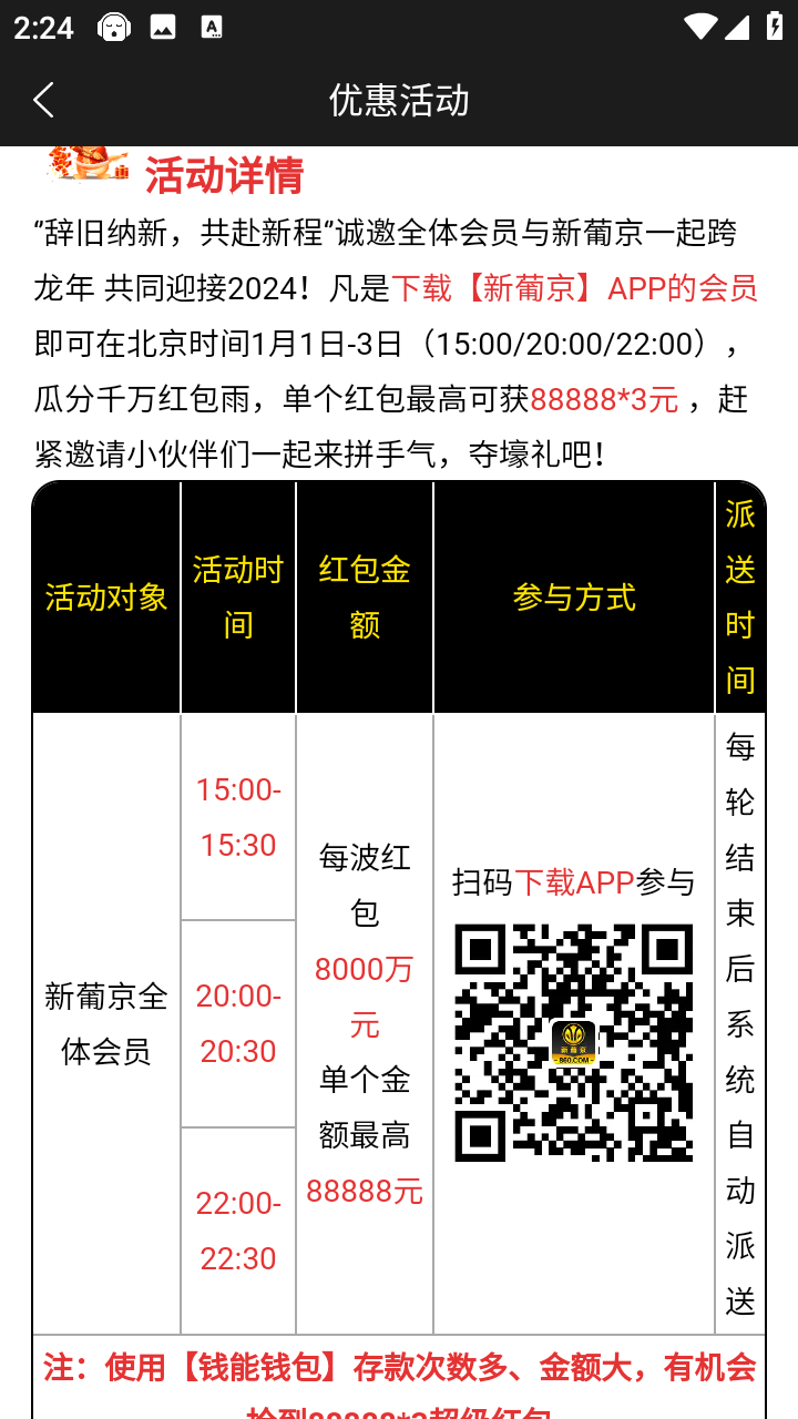 纯白嫖项目【禁止充值】注册绑卡下载APP,活动优惠里面自行申请彩金,2023年12月30日开始元旦3倍红包,每天3-4次,1号当天凌晨可以抢888到990元红包,完全不需要充值,每天还有免费红包抢,新人注册都有下载APP注册彩金送!!冲啊!!!