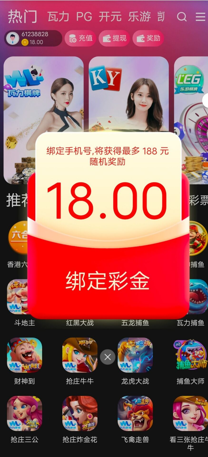 新用户注册绑定手机号秒最高188彩金,具体自测勿充值