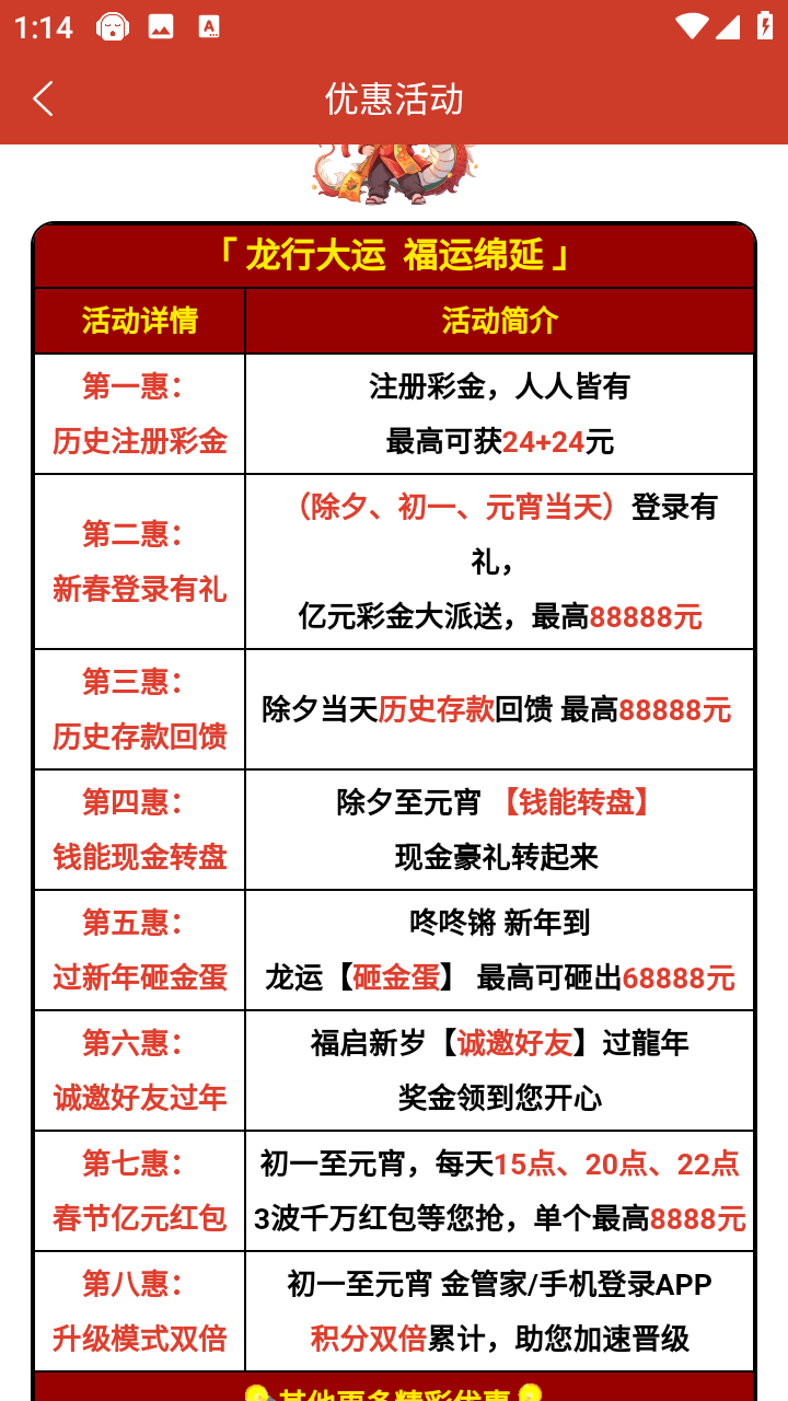 2月9号当天登录秒24+24,还有其他的登录彩金,新用户可以申请18。
