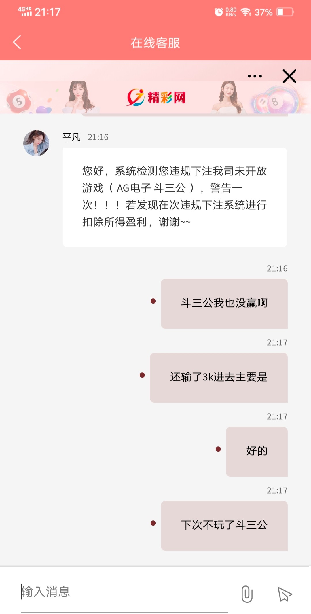 你这警告还好!我的上次直接罚十倍流水!输完了