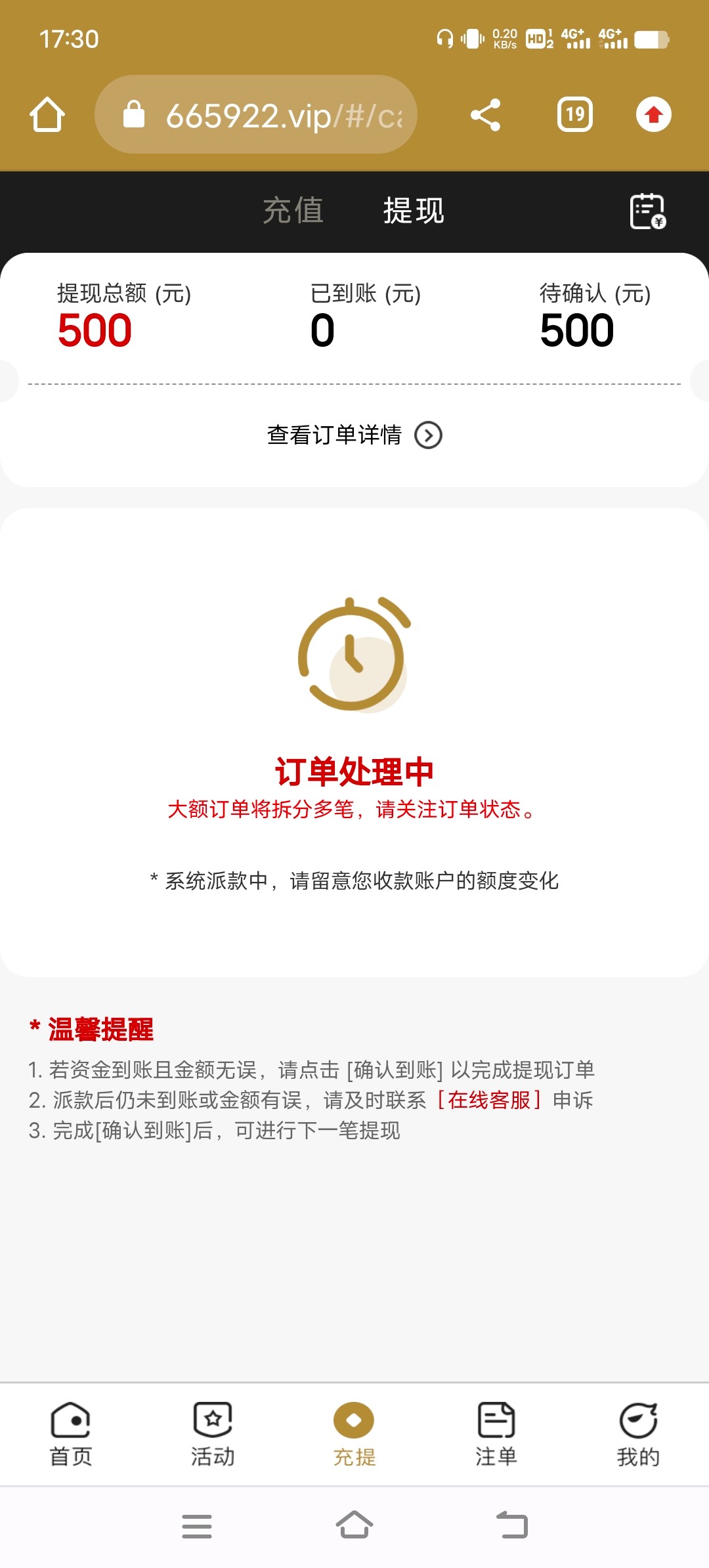 6啊提那么久都没有到账,不取消重新提现一下