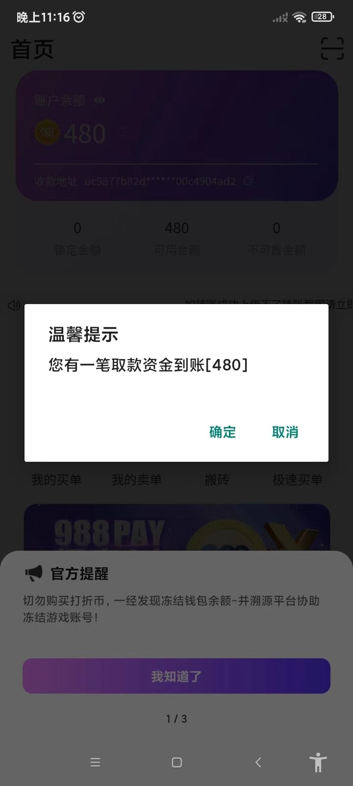 祝老板们发财 太牛逼了  送了两个58   200退回  打到480  半小时到账