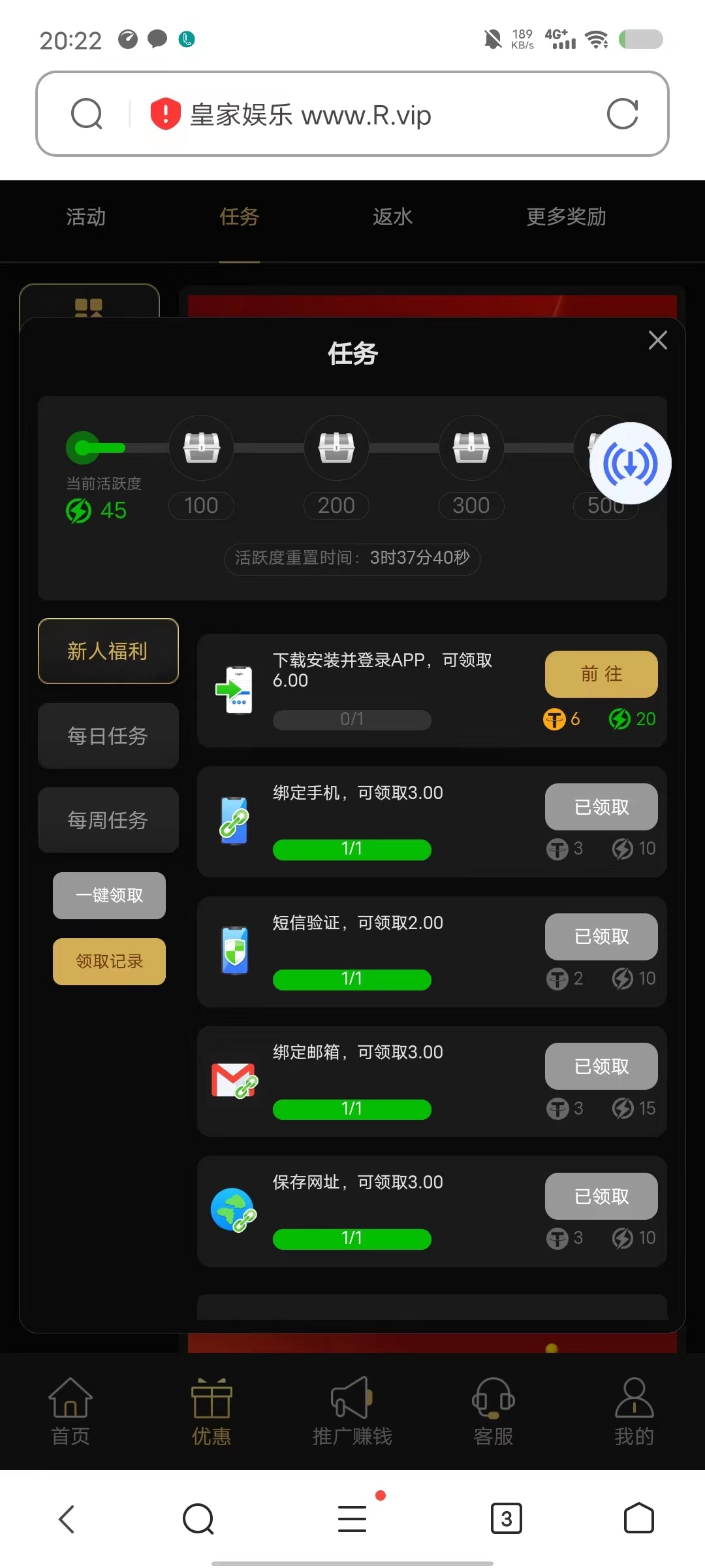 活动:新用户注册完善个人资料优惠里自助领取17/100提