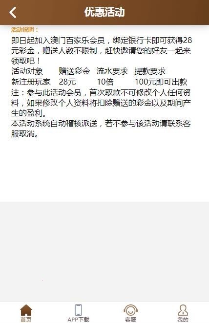 活动详情:新用户注册绑卡完善资料,找客服申请28彩金最低100提现具体