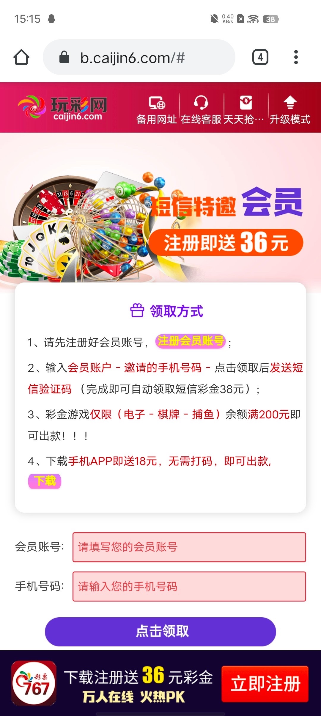 进网站随便输入一个账号 再输入自己手机号 是特邀的话再去注册 特邀碰瓷都去试试 还有下载app彩金 游戏和提款限制自行查看