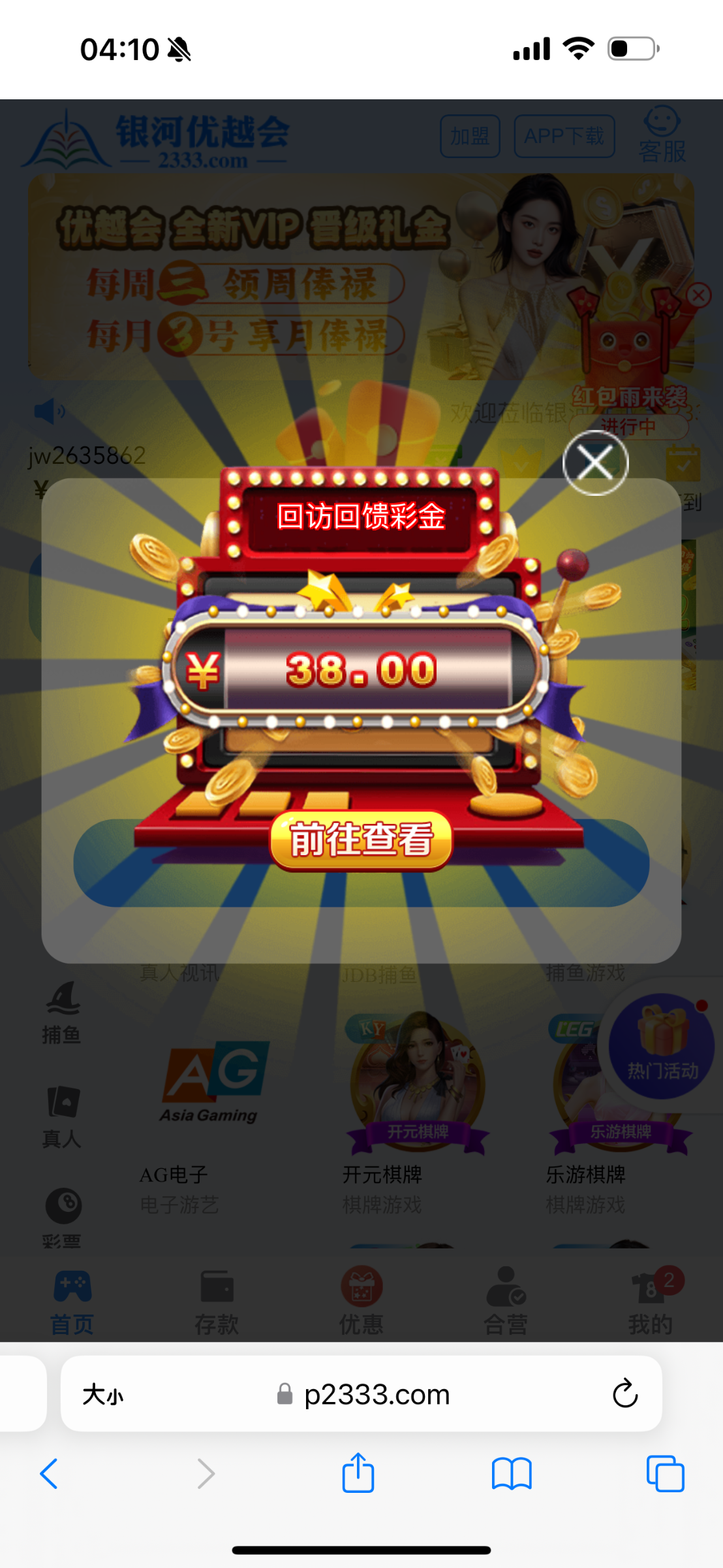 有号的登录上去看看,自动弹出来红包38,有就有没有就没有
