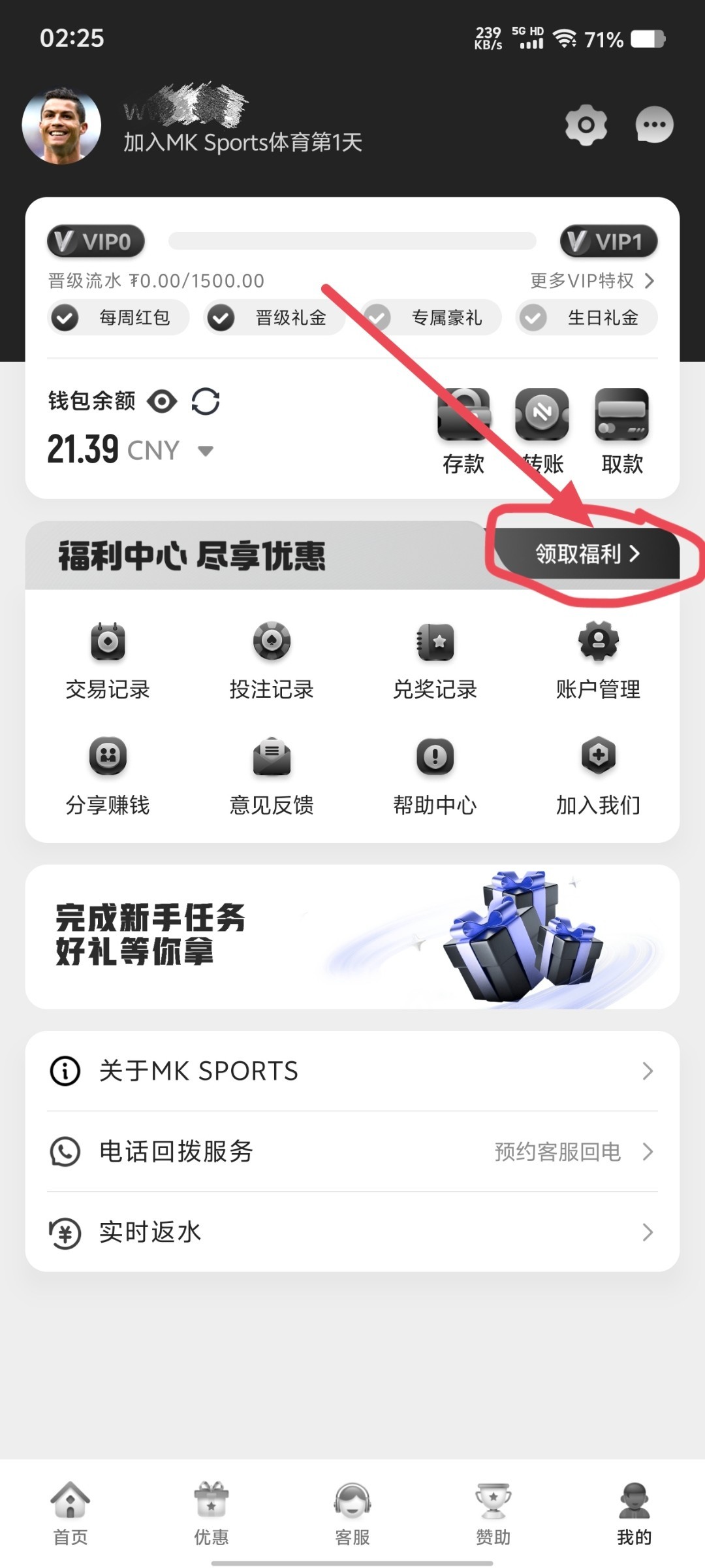 ↓手机号和银行卡任务奖励是在福利中心领取