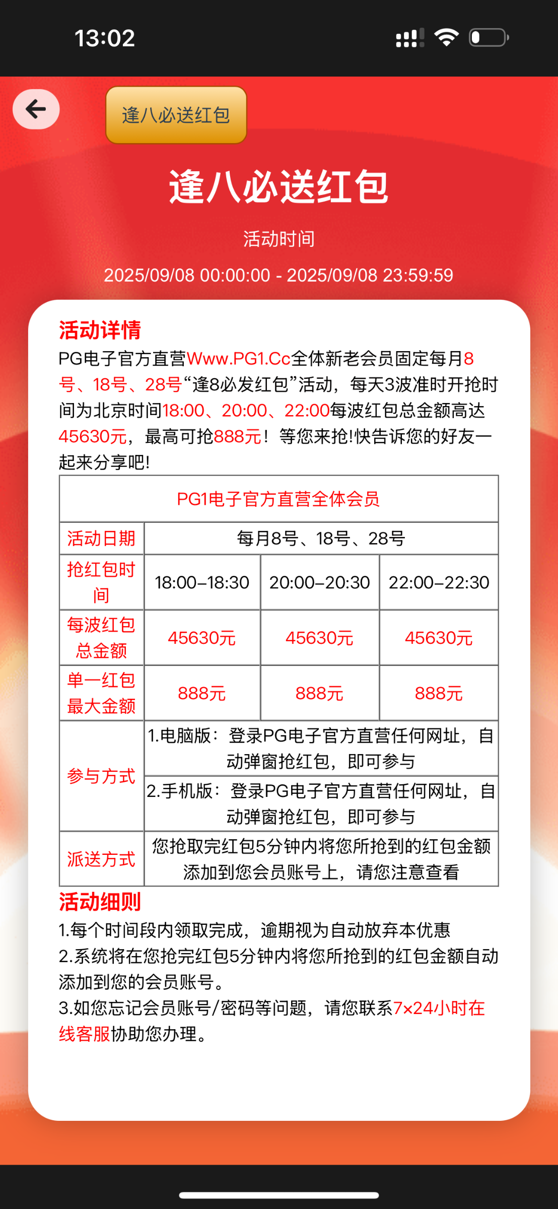 18.00-20.00-22.00 这段时间红包雨