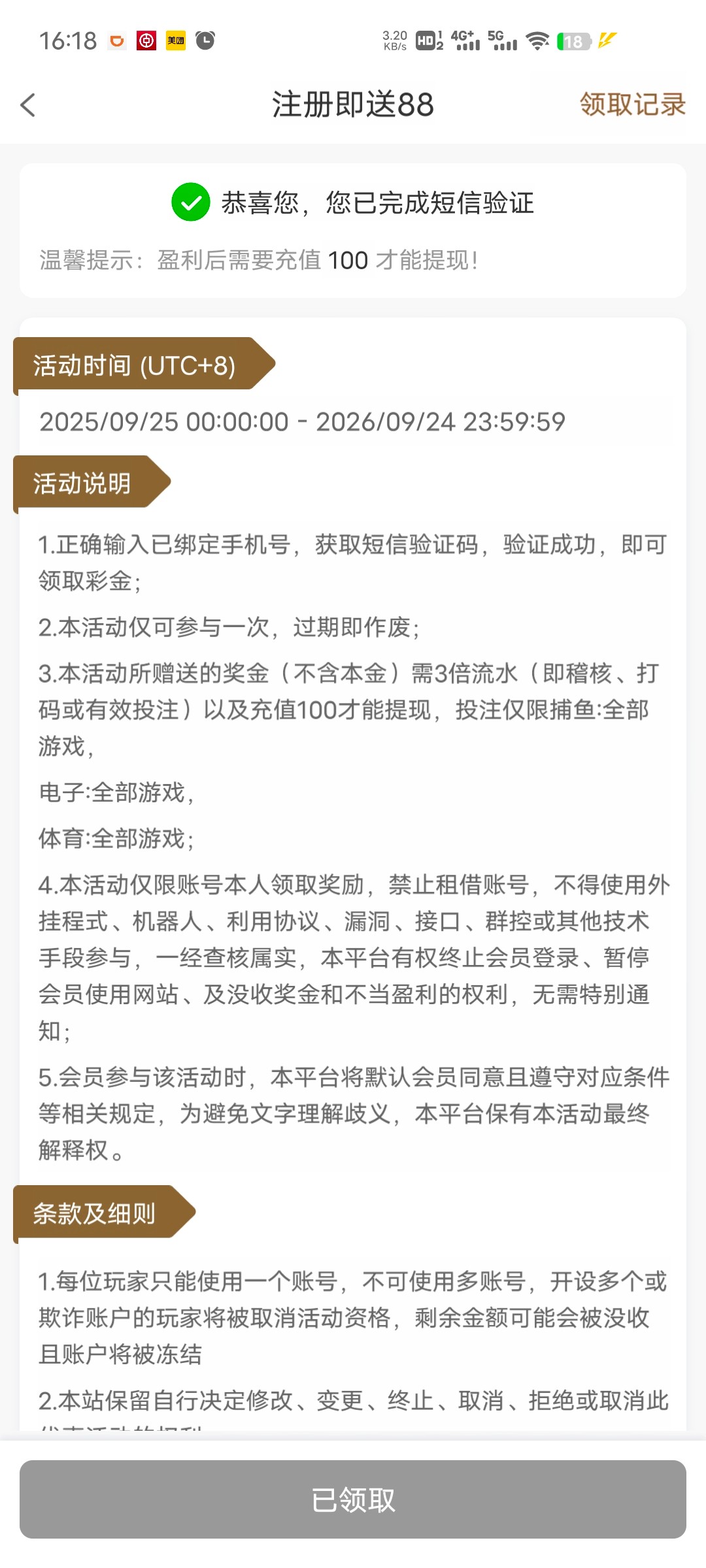 现在变18了 而且还要先充钱才能领