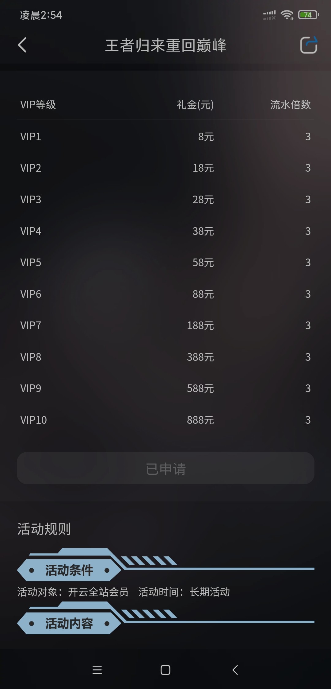 官网活动里王者回归,15天未投注就能领