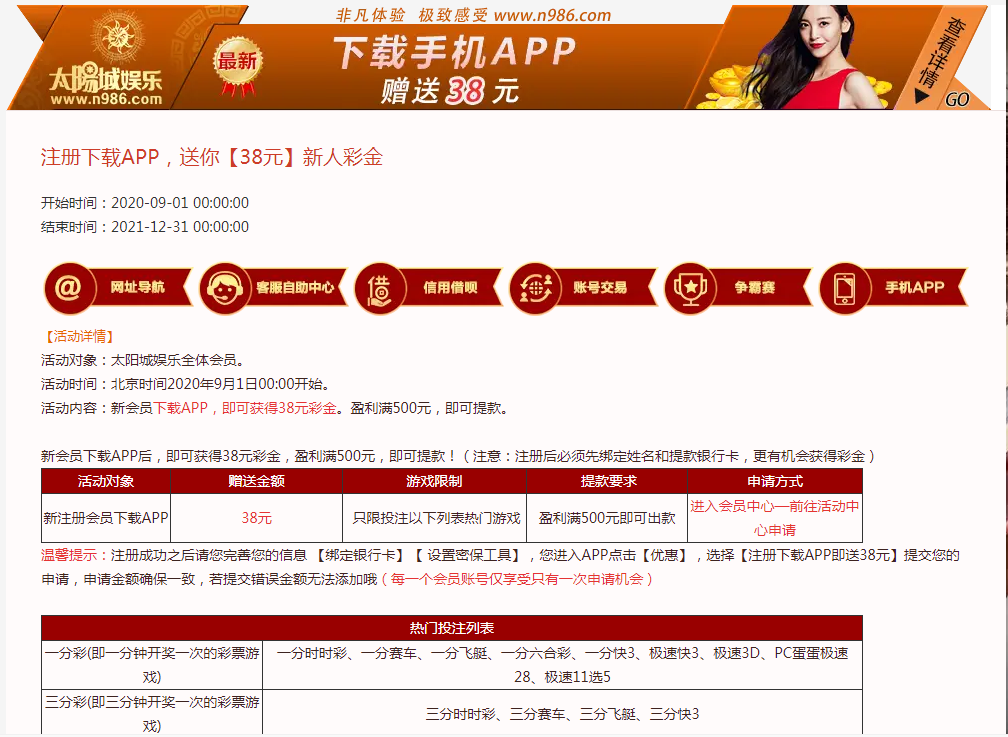 新用户下载APP注册绑卡点击优惠活动领取38元彩金/最低100元提