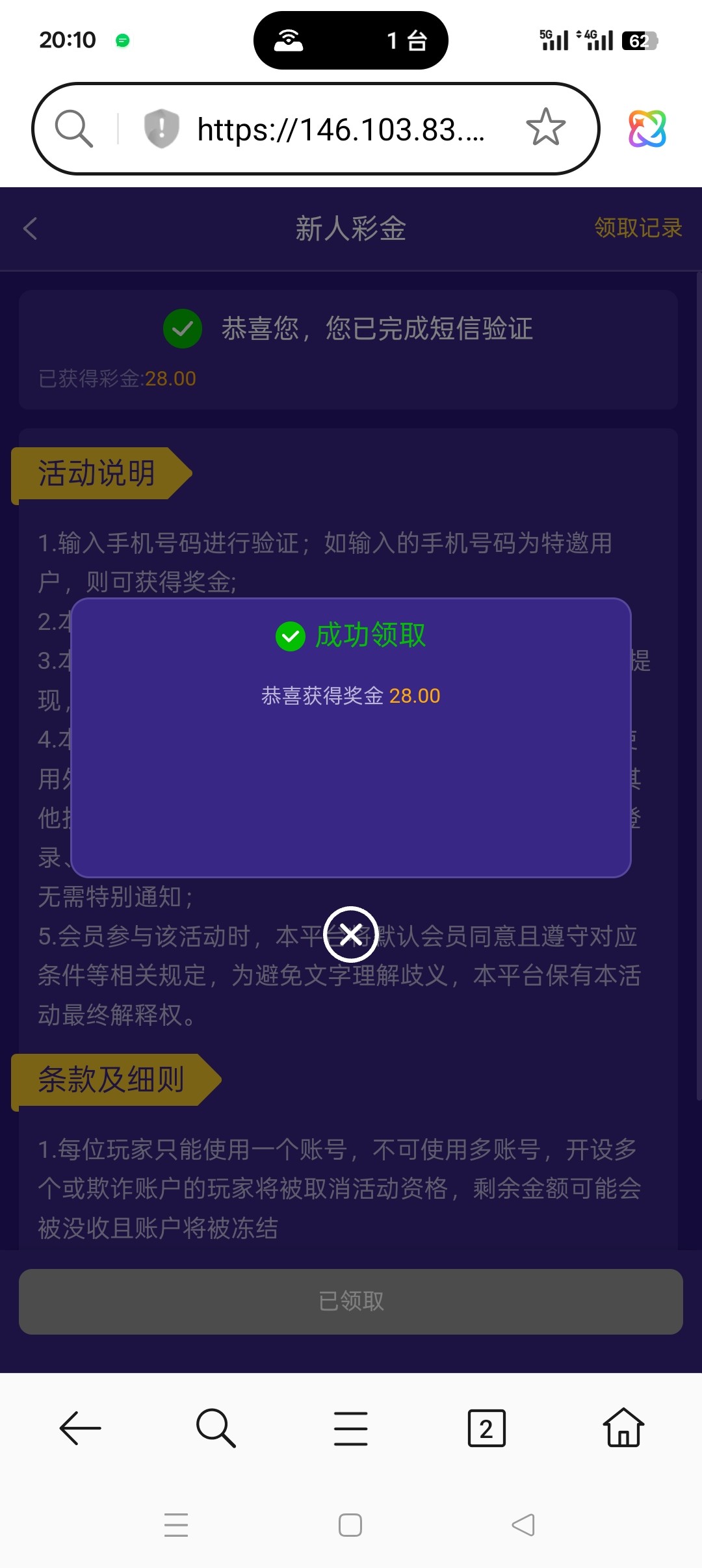 领了也没几把用,充值才能进游戏,而且这几把模板不就是那个傻逼澳彩吗,天天几把打电话,换了一百个名字了。