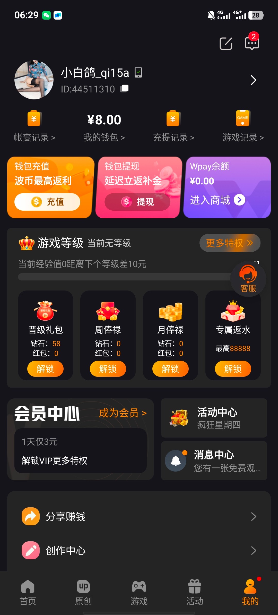 我充50块提卡到账了