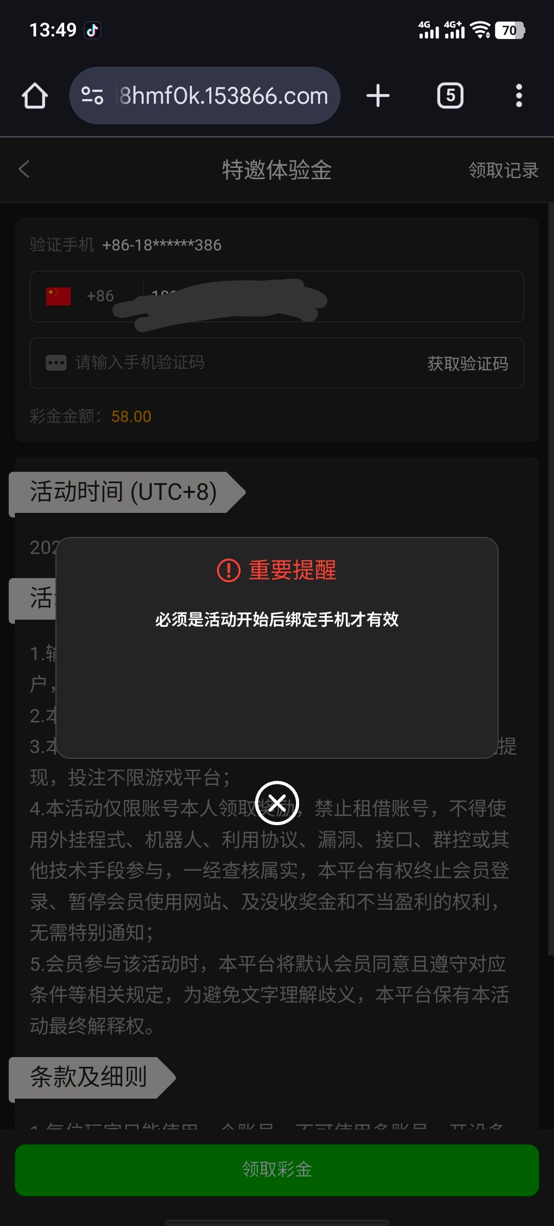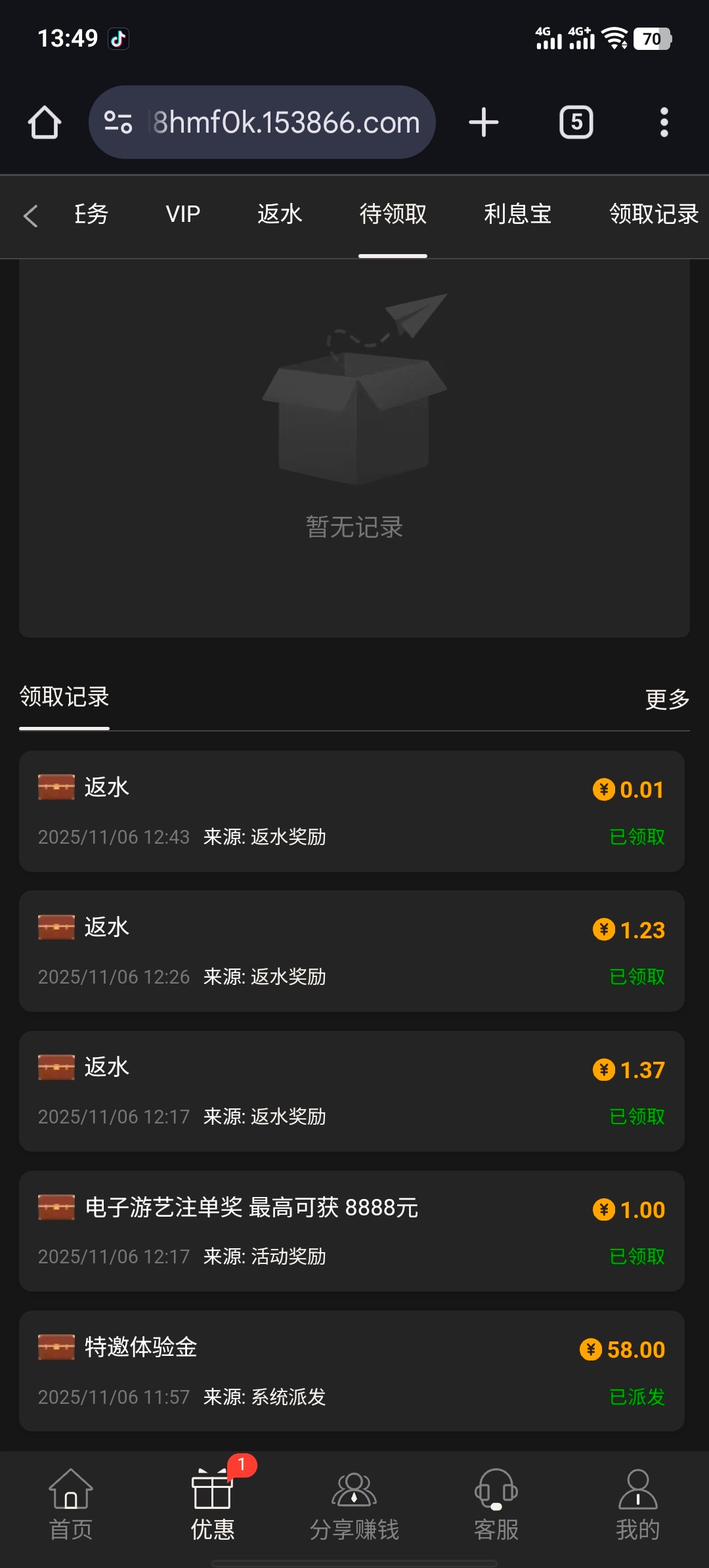 我老号 接到电话的 特邀领取那个我过期了 然后接到电话 让我找客服领特邀彩金 我去问了然后直接给我送了 老号直接去问就行了