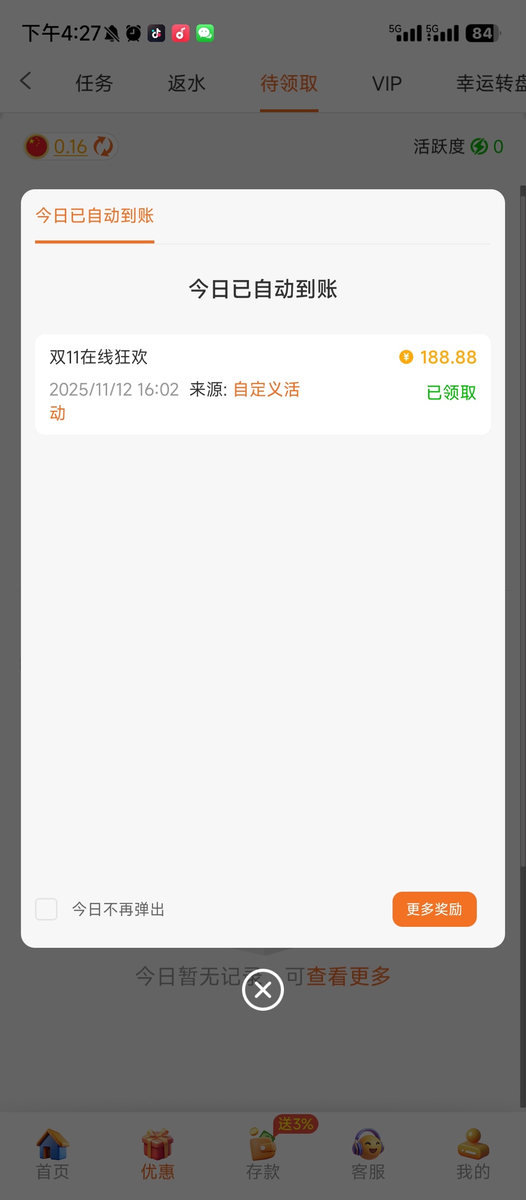 双十一彩金 昨天在线的领取