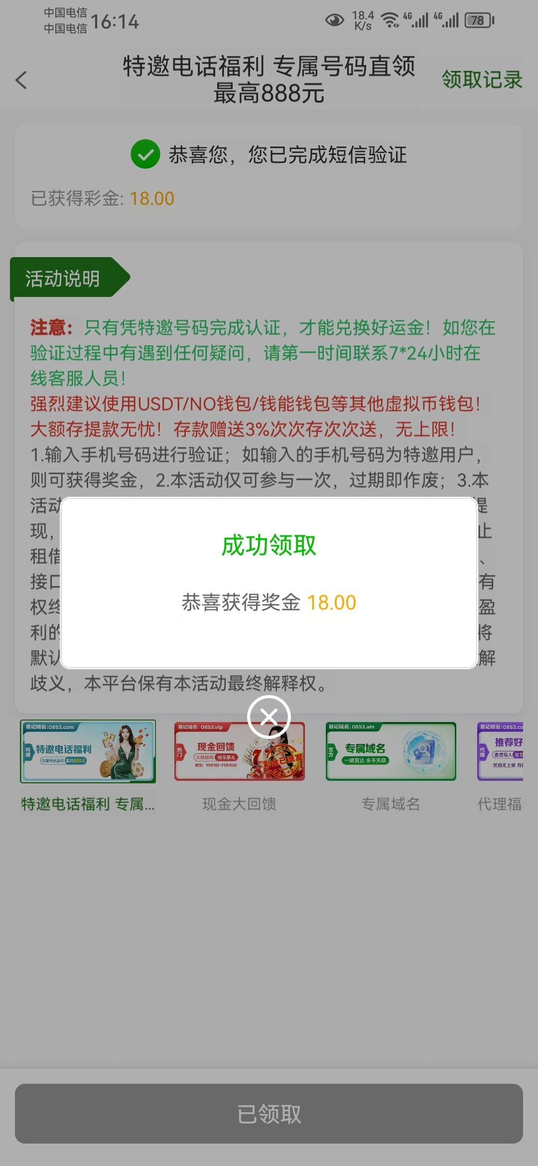 老白菜了刚给我打了两个电话3个手机号领了两个第三个也领到了有号的上去看看没号的上去优惠碰瓷电话彩金网址0853.com