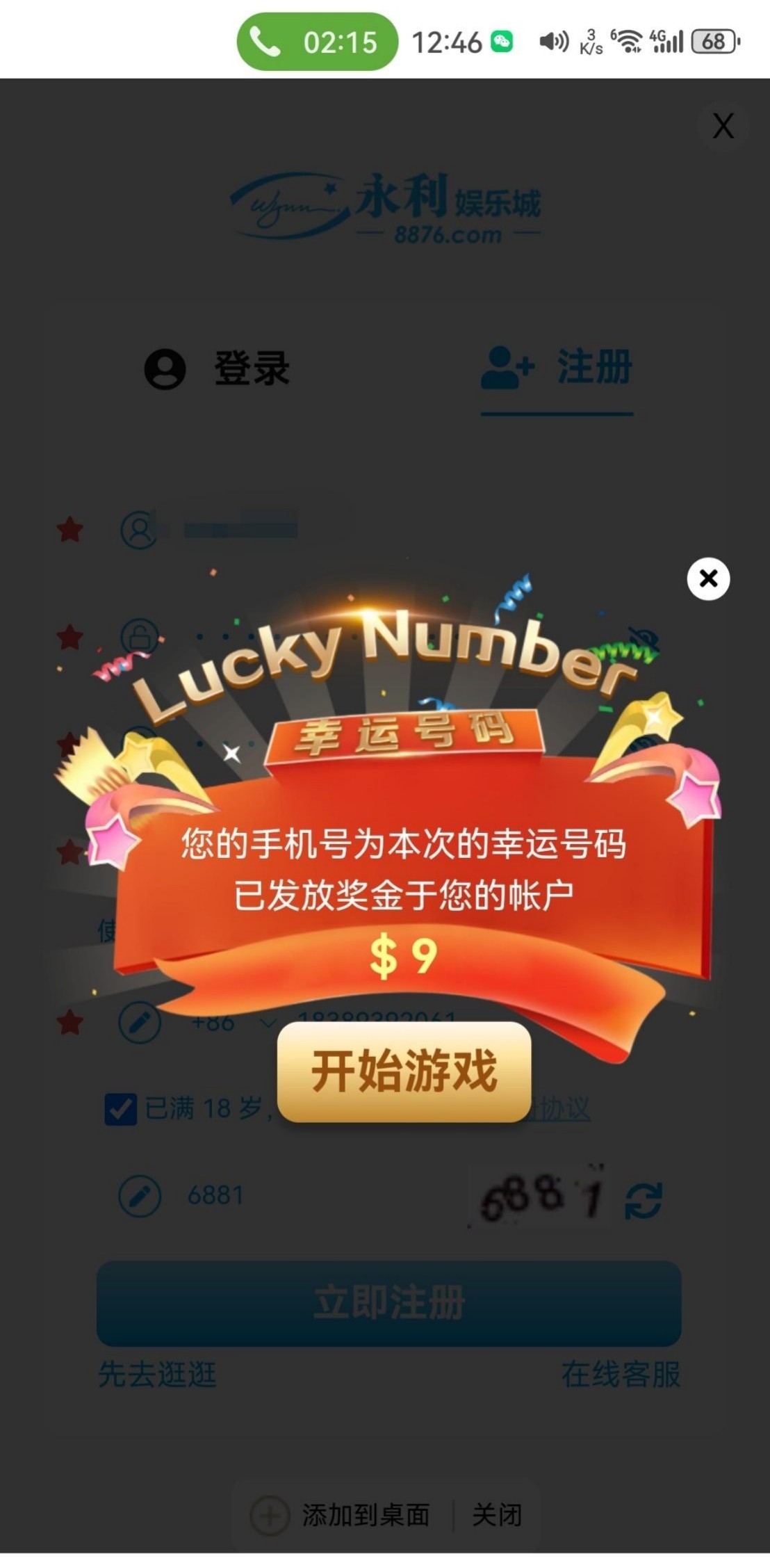 刚刚接到电话,注册自动弹出9块彩金。可以碰瓷试试,电话里报的网址30256.vip