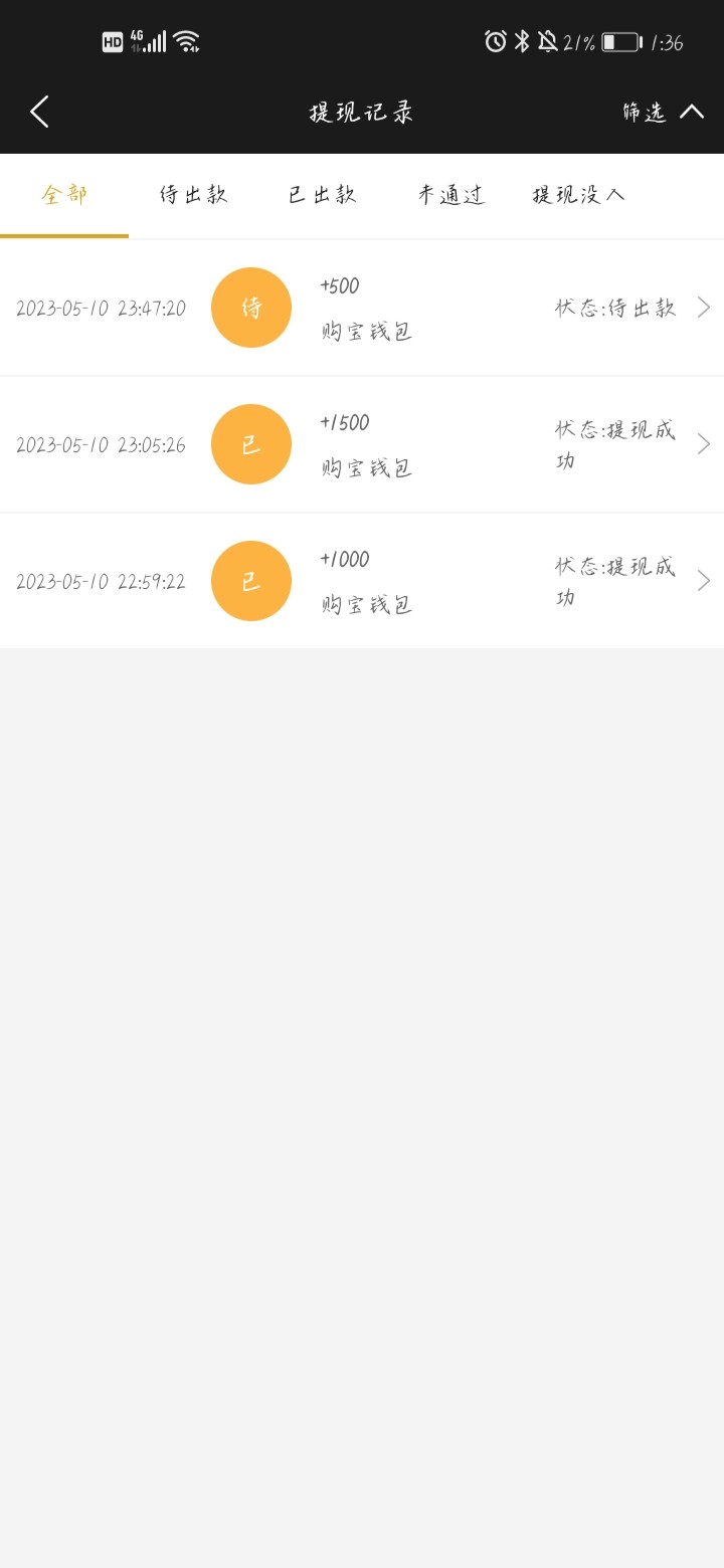 到账了,我提到钱能然后再提到自己支付宝了