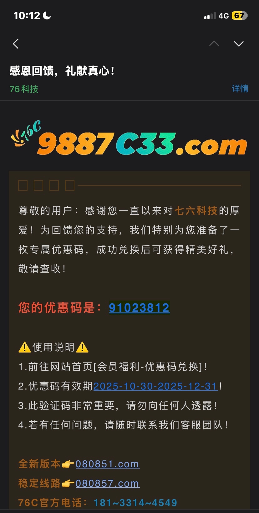 昨天有人发的注册送89的那个今天一看邮箱里给我发了个优惠码换了18链接9887c1.com