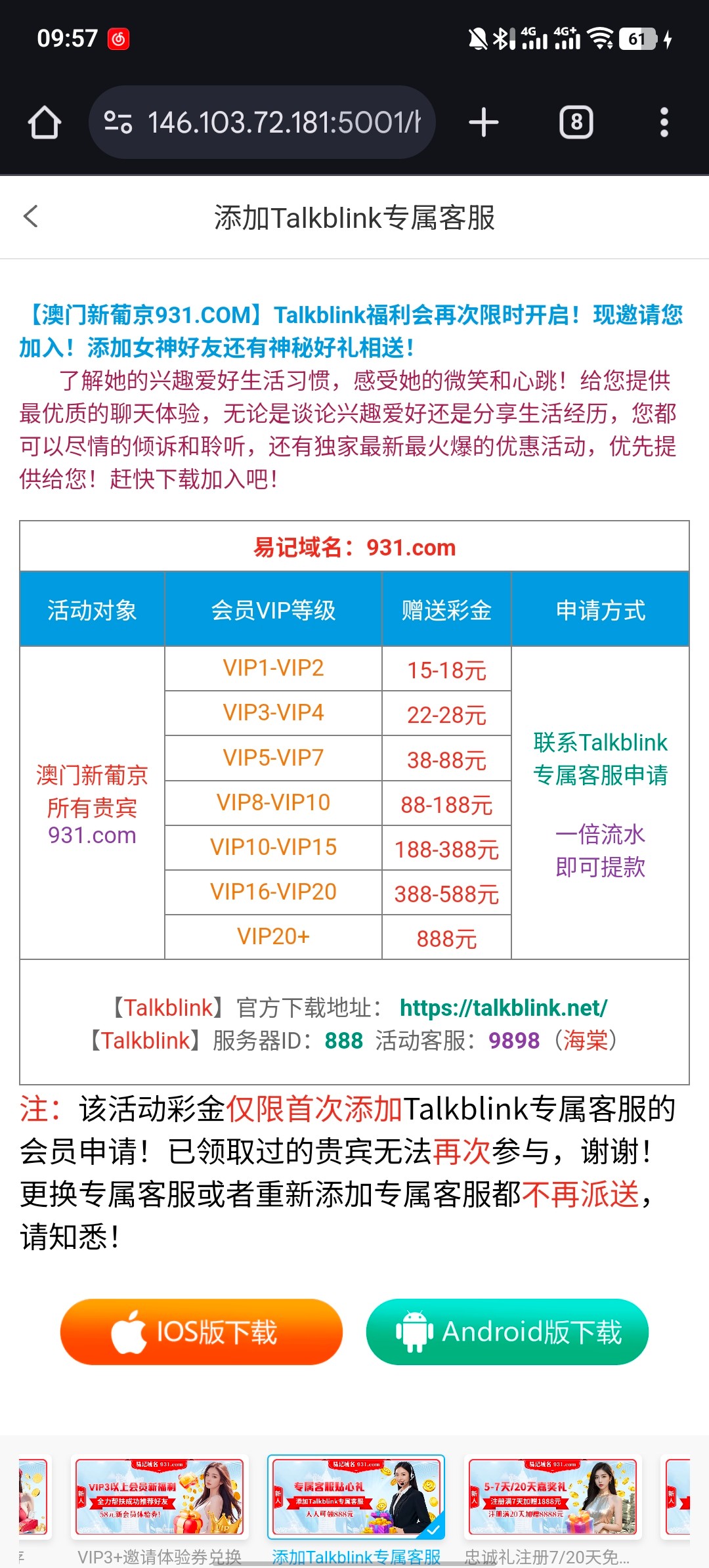 之前打过1+1的 有号的可以去申请 回归彩金 还有一个 TB专员彩金 可以申请