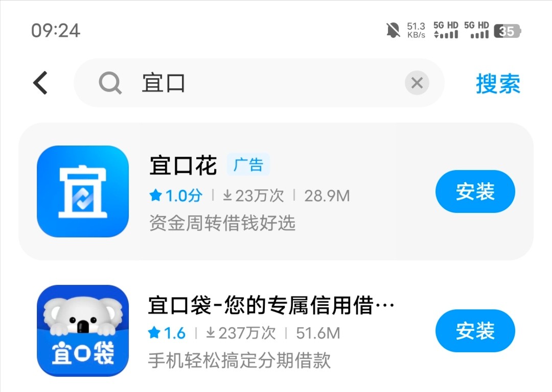 应用商店直接搜宜口贷,应用商店搜不到,就浏览器搜,就那个袋鼠头像的。