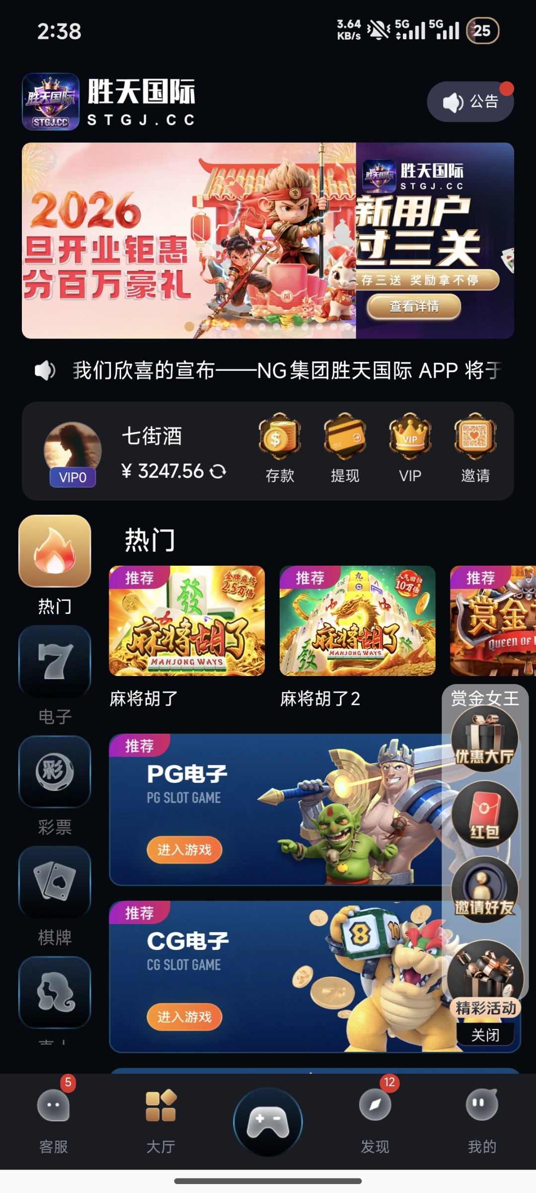100+100,秒没,然后充300随便玩玩,麻将输到60,去玩佳人,炸到4200,后面贪了,输到3200了,提现绑定有问题,还没提,还是0.8给的千倍,买10块8块的免费,就没超过200倍