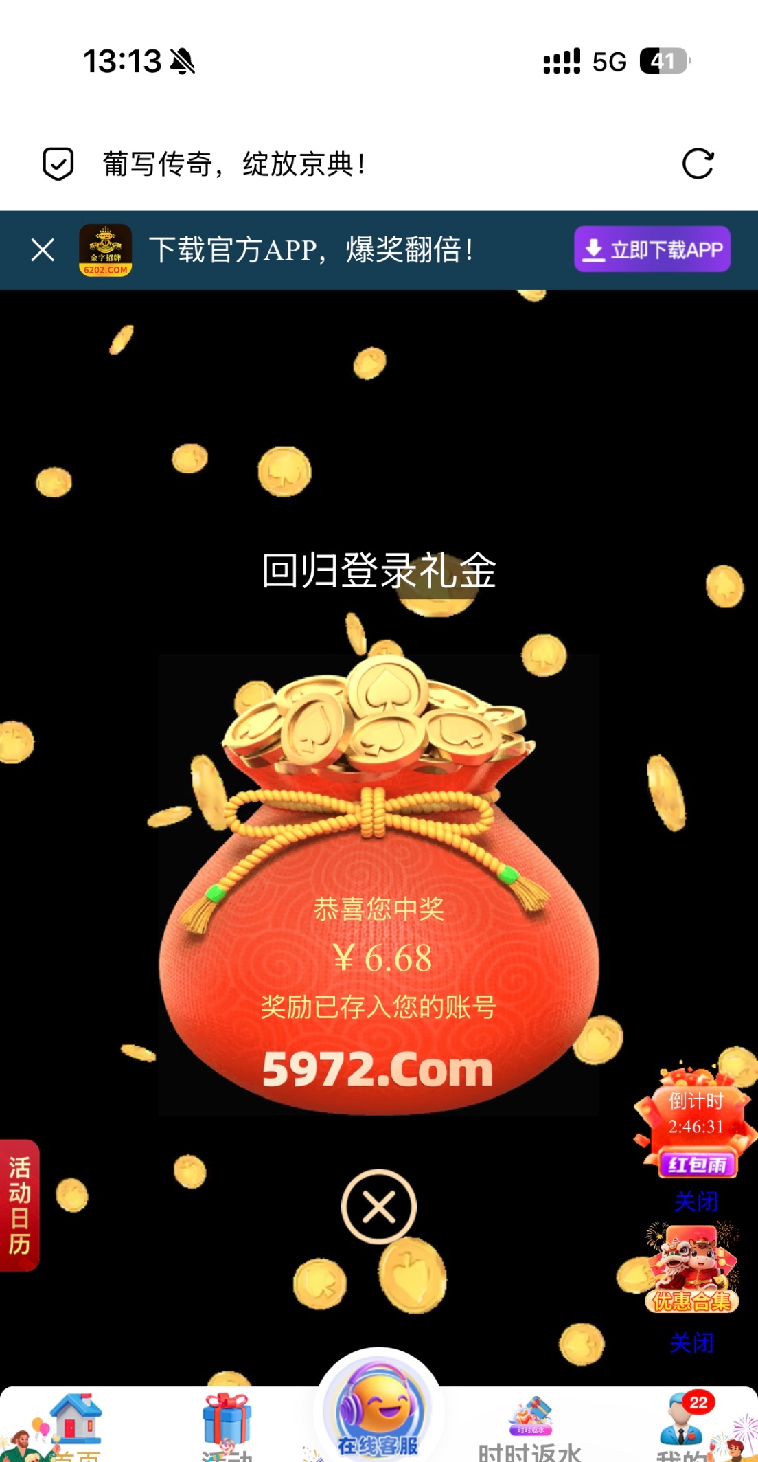 【葡京8733-回归/福袋彩金】