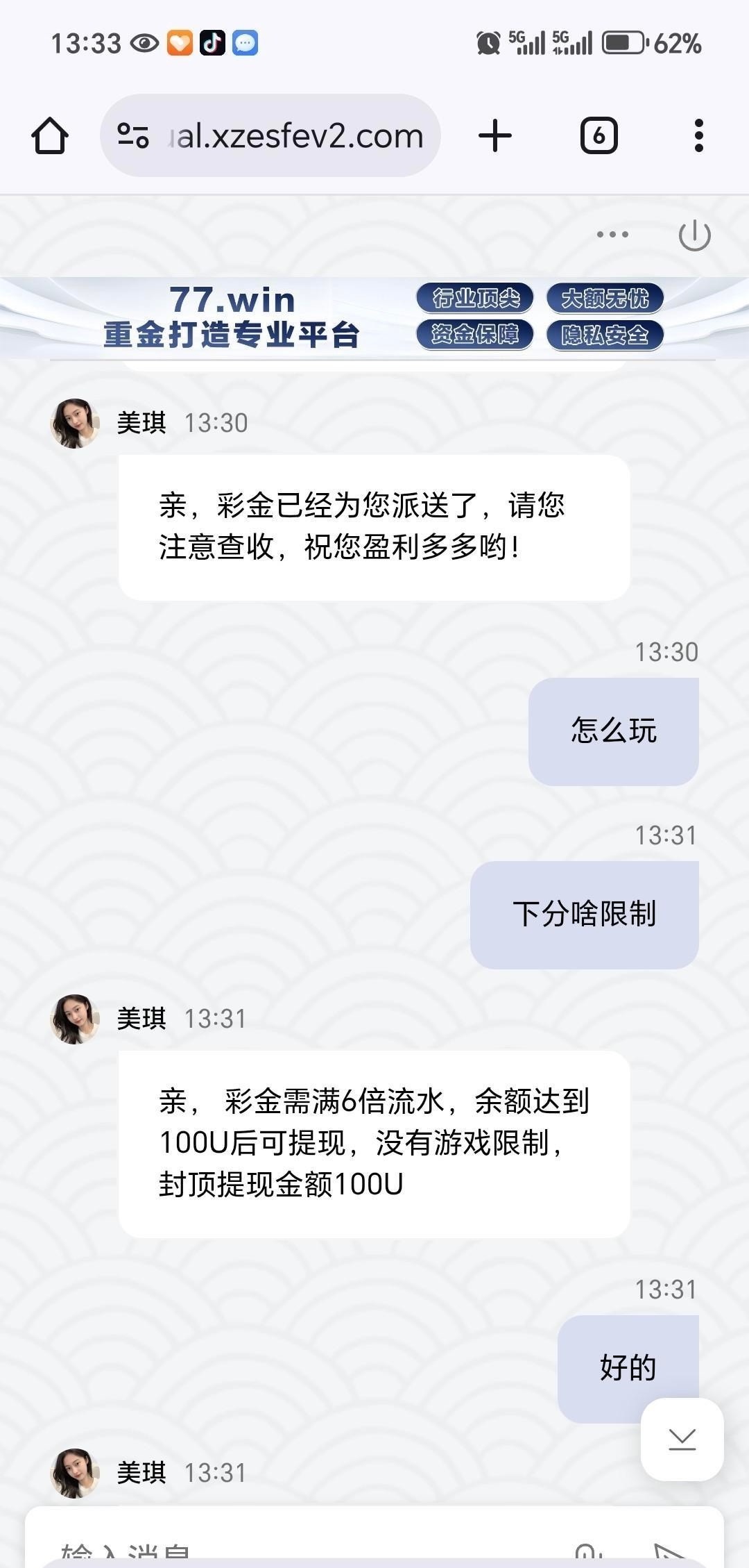 碰瓷大众彩送18.8u 注册绑定名字和u地址找客服申请