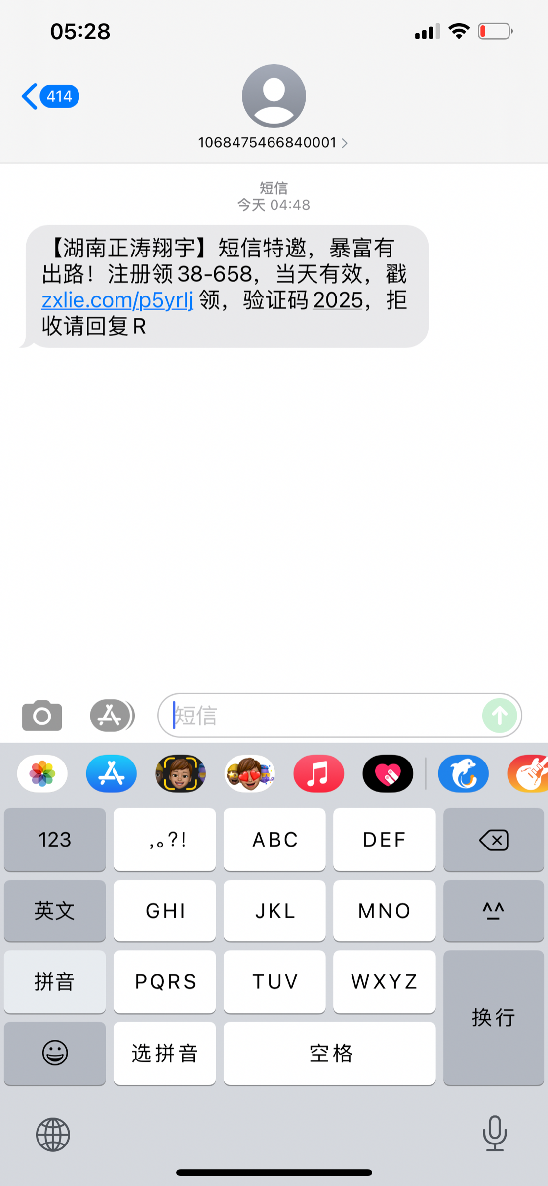 这种就是垃圾直接拉黑号码,给我一直发短信都轰炸了
