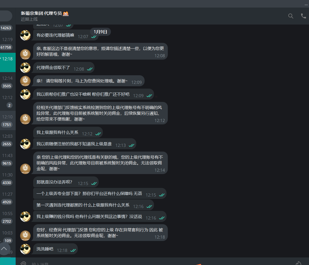 以前不知道啥时候推广的下面有点人 有个几百块钱佣金都黑 一会说账号活跃度不够 一会说上级有风险 一会说套利行为每个局 连佣金都黑 还不如去路人线下做一号