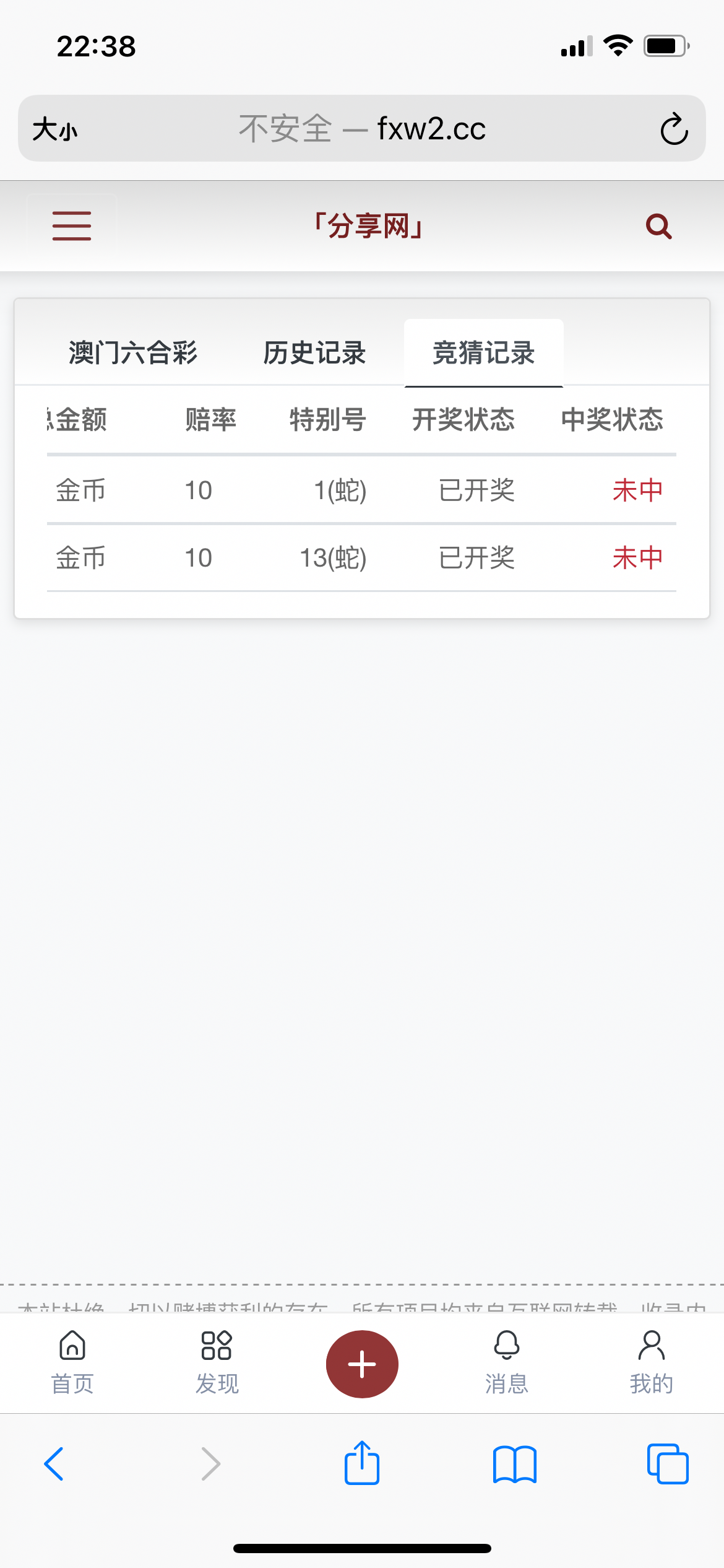 我中了 显示没中