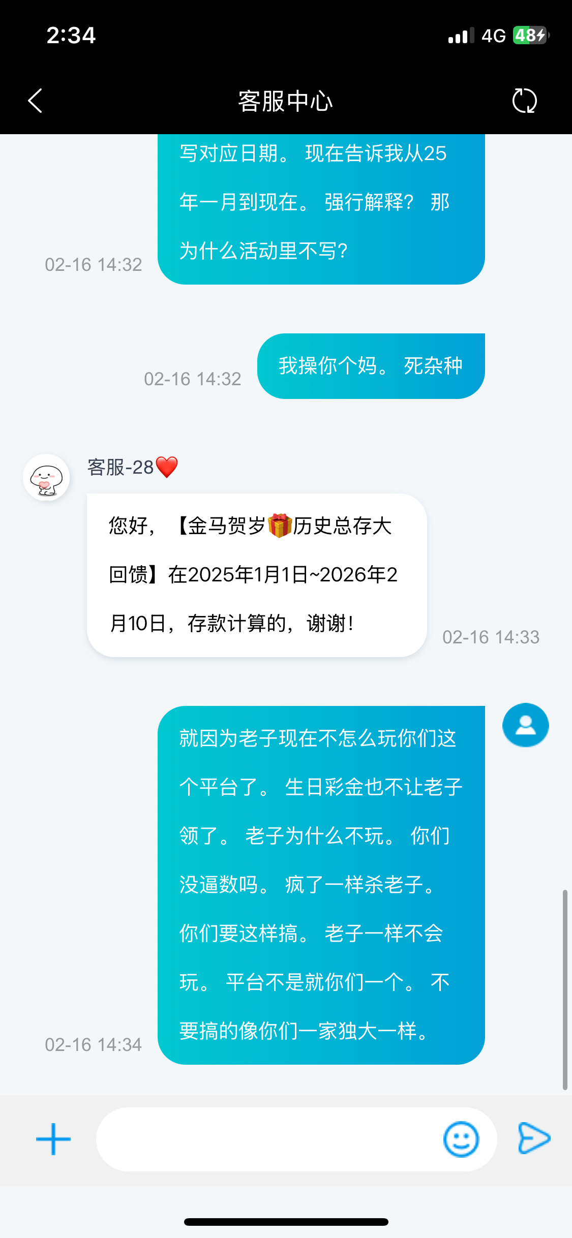我生日彩金。还有去年历史总存都是达标十万元了的。 今年却只达标一万了。 我没话说