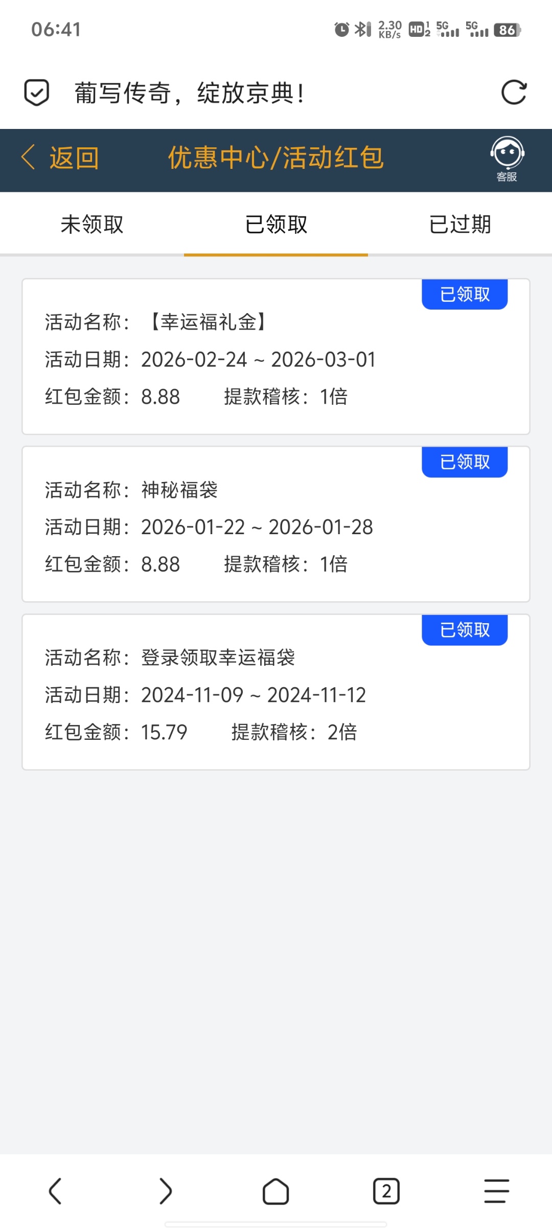 两个号都没充值过这两年,不知道为啥给的!可以去看看。两个号都有,给的活动不一样