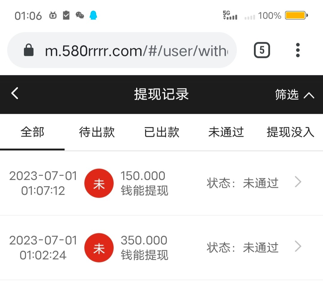 第一次提款被拒绝,让我联系客服,客服说我名下有多个账户相同名字,让我保留一个,剩下的永久冻结,然后让我在提现,这次秒到,没用上一分钟,格局了