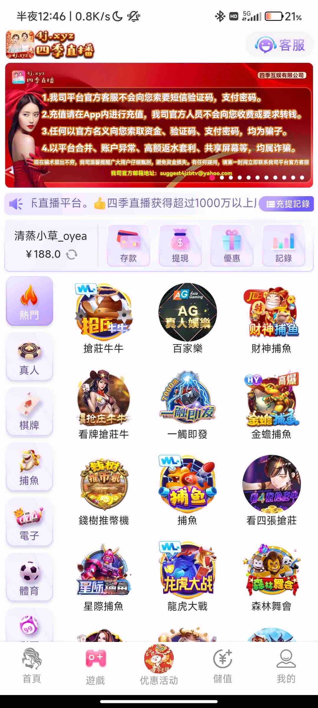 本站声明 1、本帖标题: 【四季直播】——(送288)