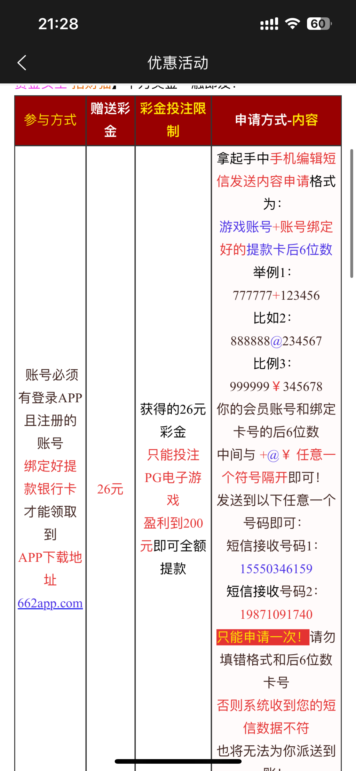 是662平台,手机特邀66,活动里还有个app发短信26,大半黑