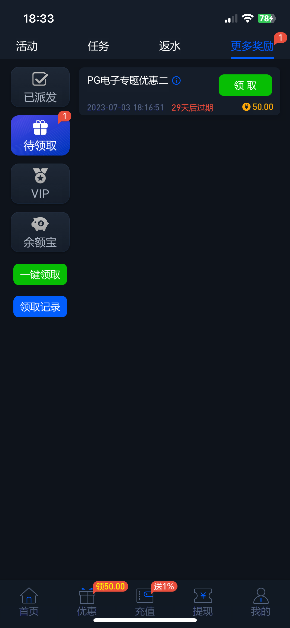 有玩过的朋友上号看看,回馈了我50,没有别嘴炮